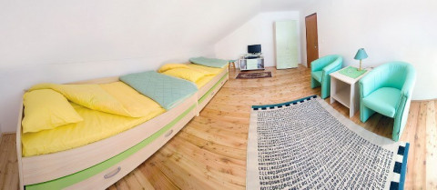 Naša kuća je kategorisana sa četiri zvezdice i raspolaže sa jednim apartmanom sa pet ležaja (80 m2) i tri sobe sa po 2+2 ležaja (22 m2). Idealna je za porodični odmor, kao i za boravak većih grupa od desetak i više osoba.